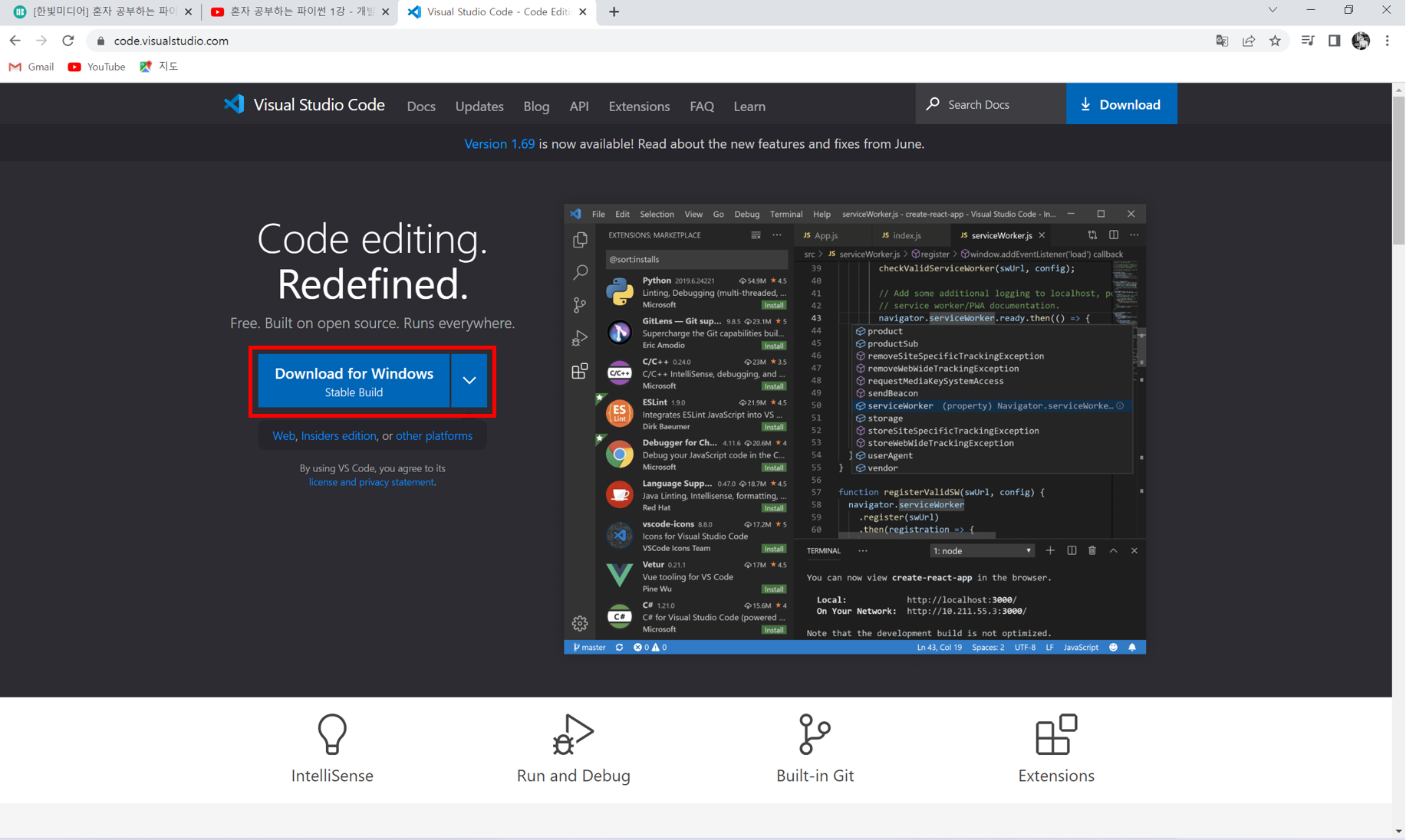 3. Visual Studio Code와 파이썬이 잘 설치되었는지 확인