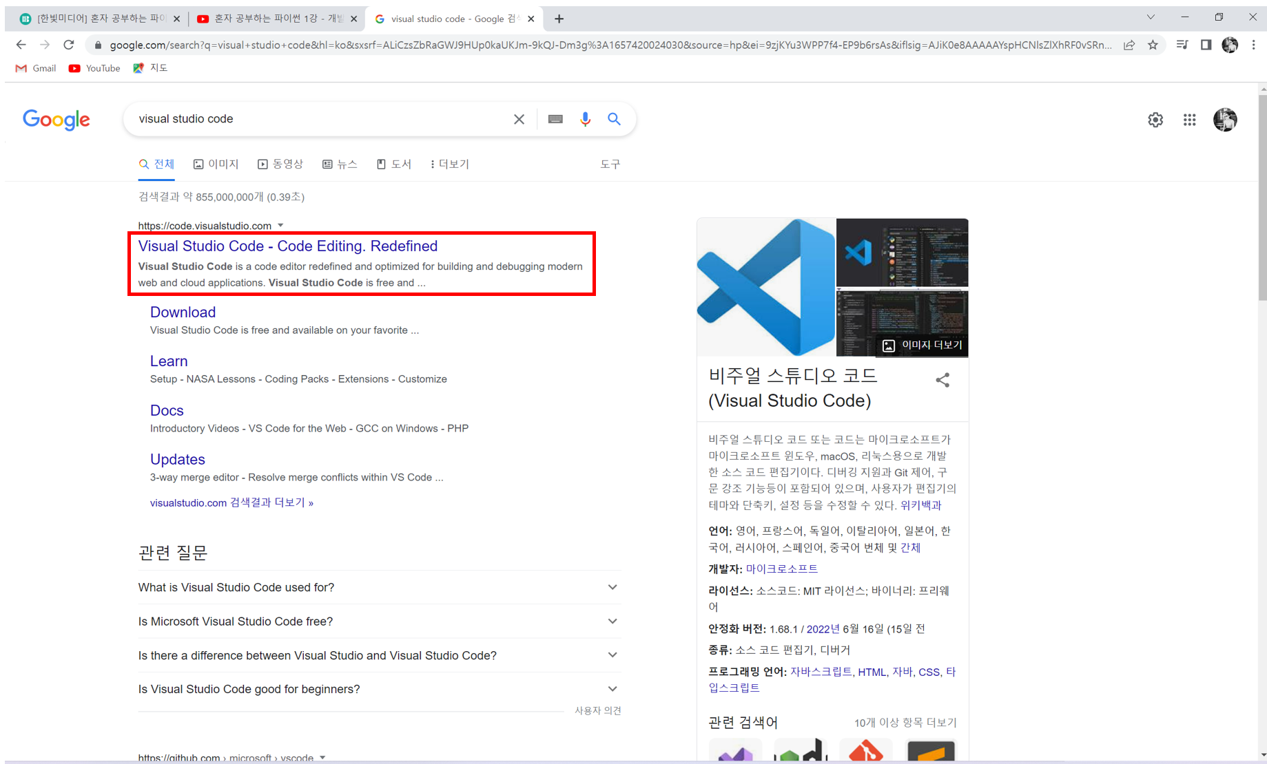 1) Google에 Visual Studio Code 검색한다.