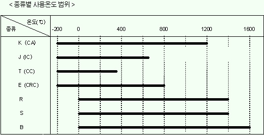 | K type | 측정 온도 범위가 넓어서 공업용으로 가장 많이 사용된다. |