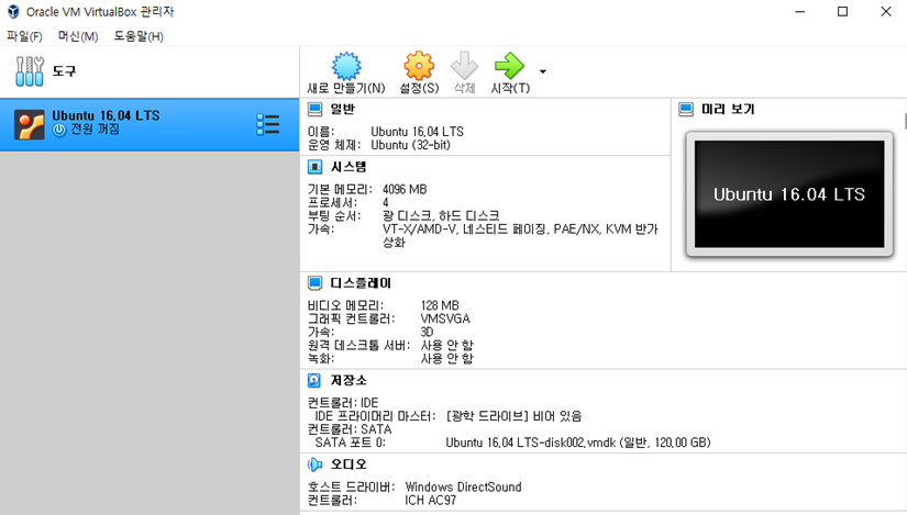 위의 그림은 Oracle VM VirtualBox 화면이다. 오른쪽 위에 설정을 누른다.