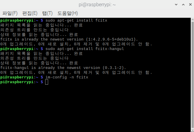 => 라즈베리 파이 메뉴의 기본설정 > 입력기 설정에서 fcitx가 나오지 않는 오류를 잡기 위해 사용