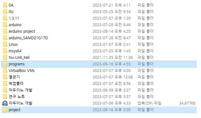 6. 프로그램을 설치한 폴더가 있는 곳에 프로젝트들을 저장할 폴더(project)를 만든다.