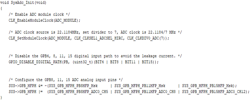 1) CLK_EnableModuleClock(ADC_MODULE);