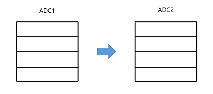 하지만 체크가 되어 있다면 ADC1의 4개 채널을 기록한 뒤 ADC2로 넘어가서 4개 채널을 기록한다.