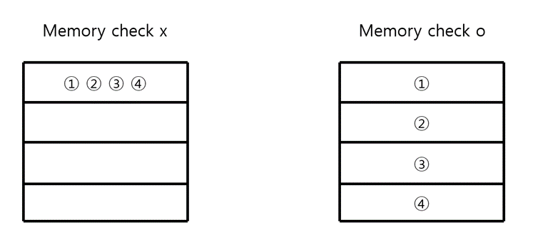 만약 채널이 4개이고 메모리에 체크를 안 하면 한 메모리에 기록하고 덮어쓴다.