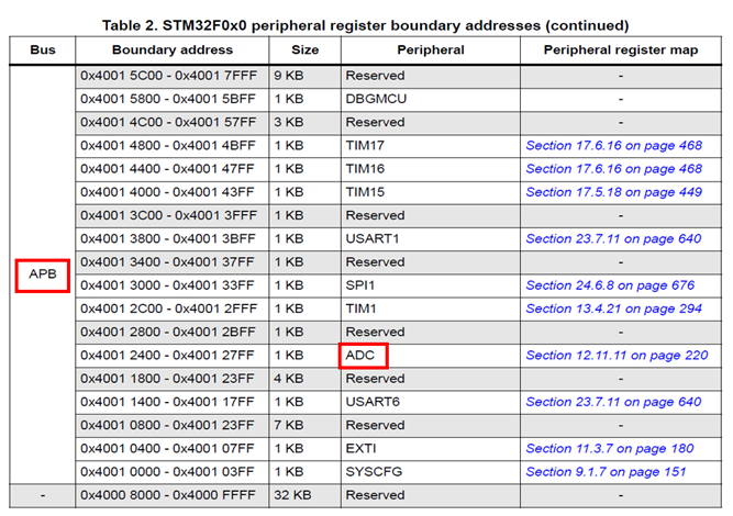 STM32F030F4P6_Reference Manual (p40) - Memory map and register boundary address