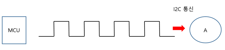 GPIO로 I2C나 SPI 신호를 만들어낼 수도 있는데, 아래의 그림처럼 MCU에서 신호를 만들어서 보낸다고 하자.