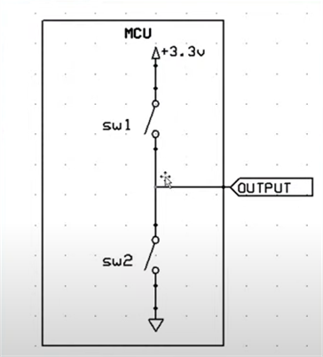 MCU에서 Output을 1로 하면 sw2가 닫히면서 IC CHIP에 0V가 들어가면서 꺼지고, Output을 0으로 하면 sw2가 열리면서 IC CHIP에 5V가 들어가면서 켜진다.