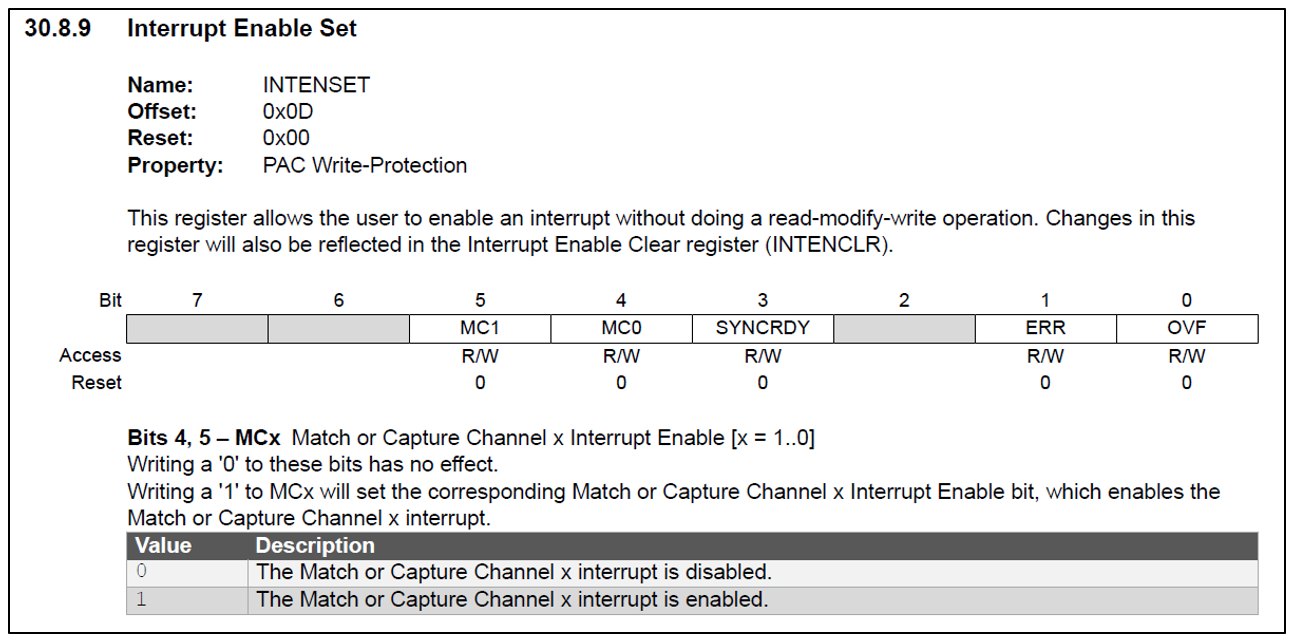 6) TC4->COUNT16.INTENSET.bit.MC0 = 1;
