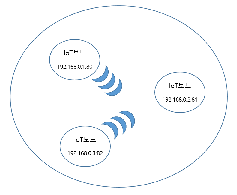 사물 인터넷(IoT)에서는 기본적으로 사물(보드)이 많다는 가정이 있다. 따라서 이런 작은 IoT보드 하나하나에 외부에서 식별 가능한 고정 IP주소를 제공하기에는 한계가 있다. 그래서 일반적으로 IoT보드들은 공유기에 연결하여 사설 인터넷 주소를 부여한다. 대신에 서버는 모든 네트워크에서 식별 가능한 고정 IP를 가지고 있어야 한다.