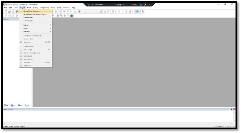 3) KEIL을 실행한 뒤 Project -> New uVision project 선택