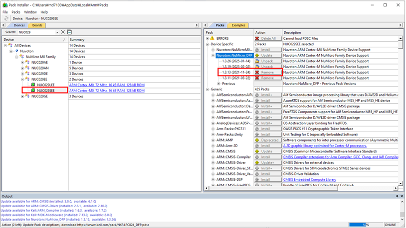 이후 Nuvoton::NuMicro_DFP에서 1.3.13을 Install 한다.