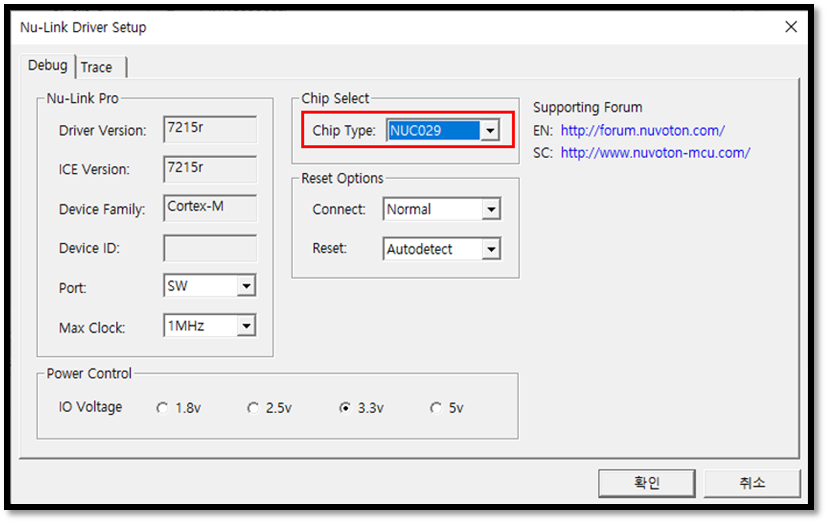 여기서는 Nuvoton의 NUC029SEE 칩을 사용하므로