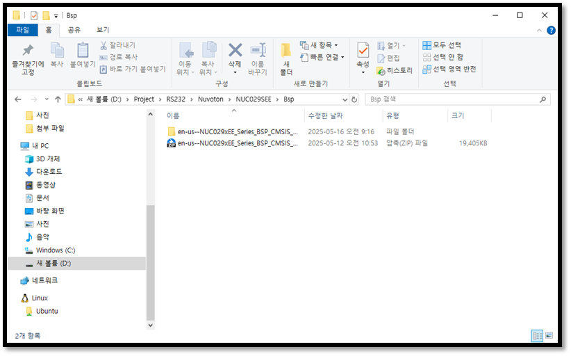 2) 1번에서 다운로드 한 BSP 파일을 위에서 만든 Bsp폴더에 복사한 뒤 압축을 푼다.